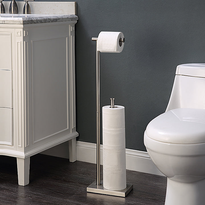 • SunnyPoint Toilet Paper Stand with Reserve - Nickel and Chrome Ideal for a master or guest bathroom, the AmazonBasics Toilet Paper Stand with Reserve