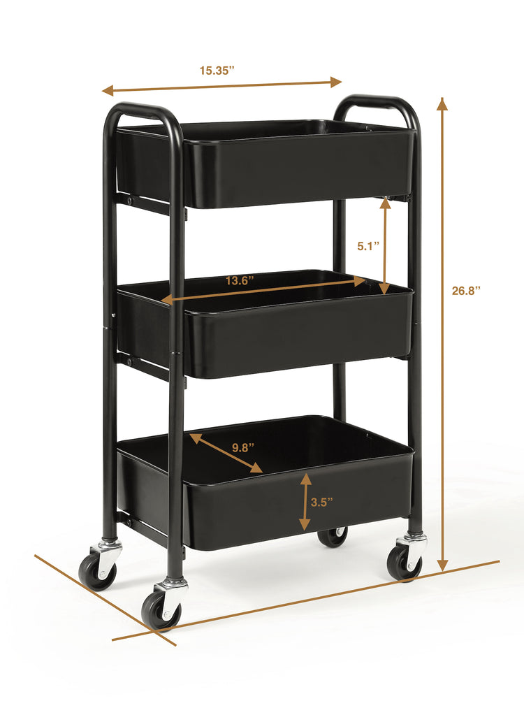 3-Tier Delicate Compact Rolling Metal Storage Organizer - Mobile Utility Cart Kitchen/Under Desk Cart with Caster Wheels