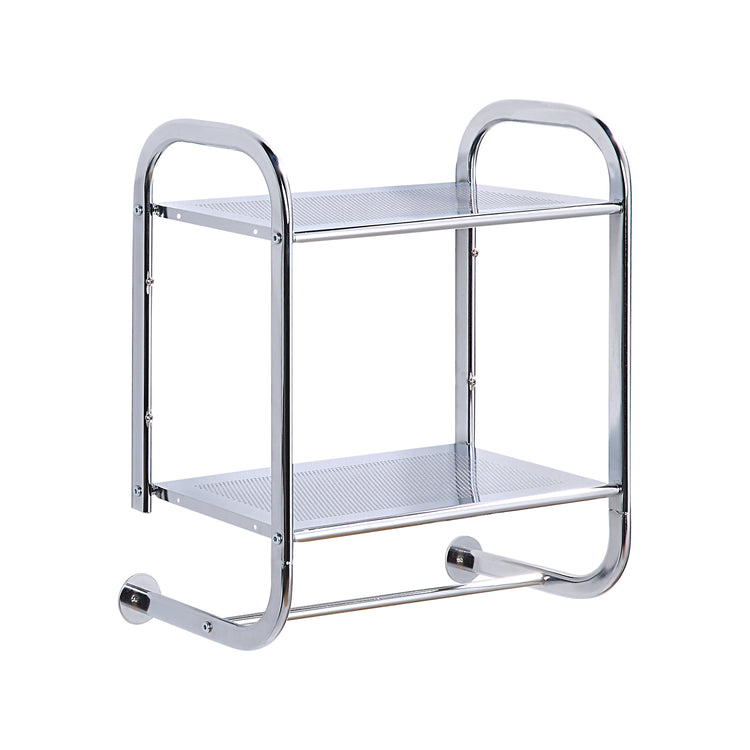 Compact Wall Mount 2 Tier Bathroom Shelf with Towel Bars