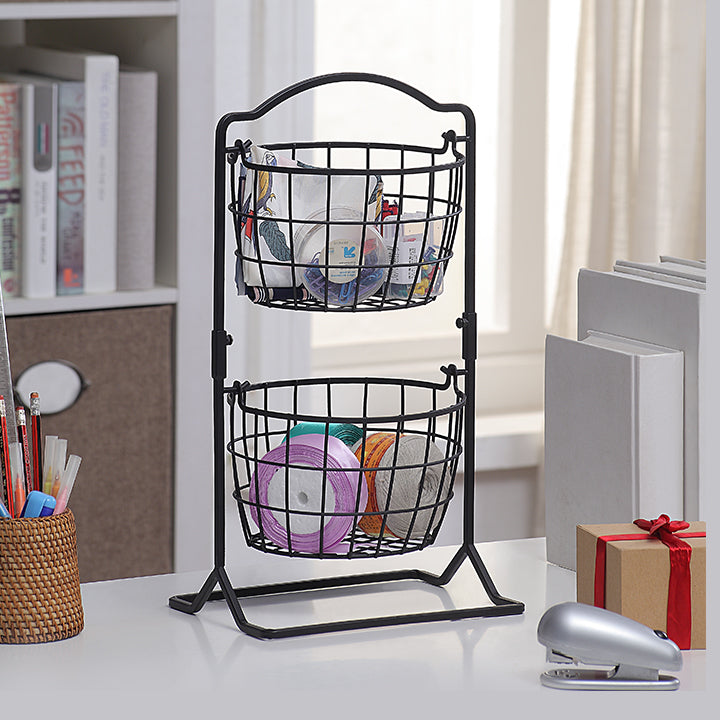 - Double Baskets, Provide Generous Storage Space, It Can Store Lots Of Fruits, Veggies, Or Other Items, Wire Design Make You Easily To Find And Select The Items You Needed