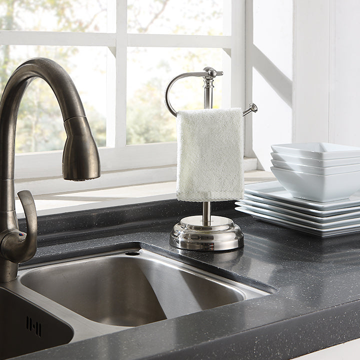 - The steel fingertip towel holder is great for displaying and drying a fingertip, guest towels along side your sink. Ideal for master bathroom, kids bathroom, guest bathroom, vanity counters, or kitchen countertops