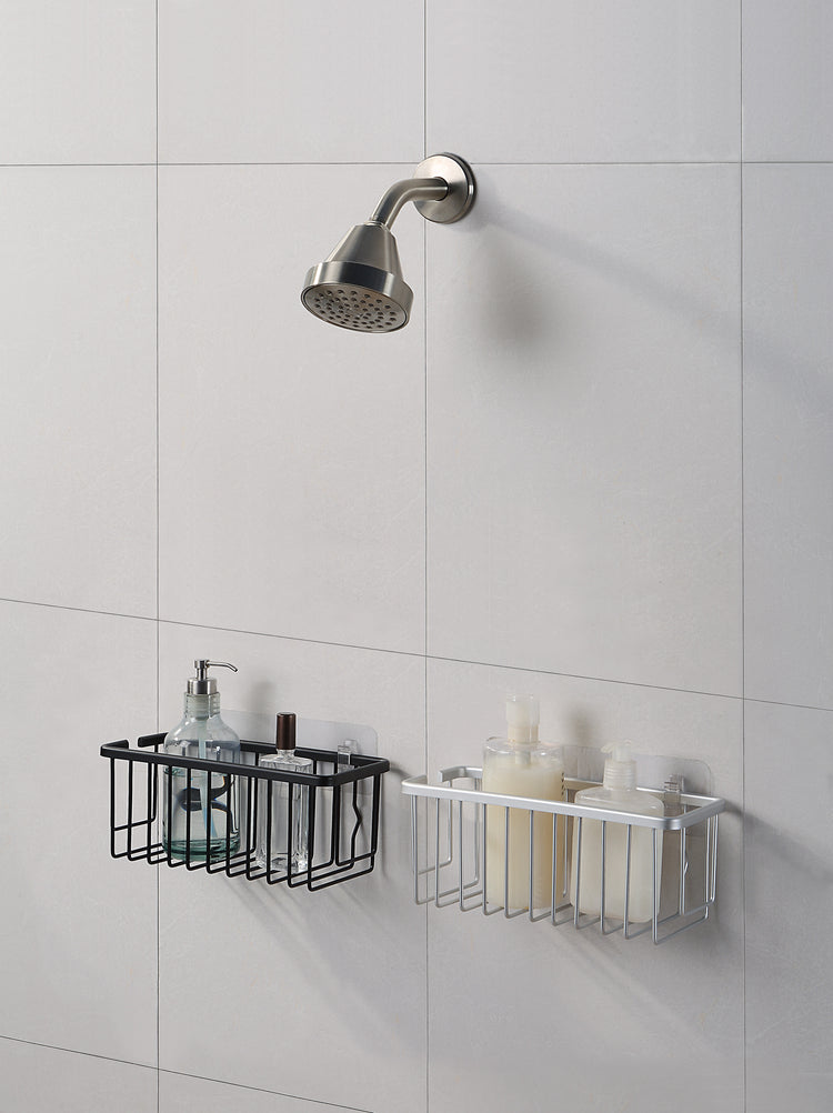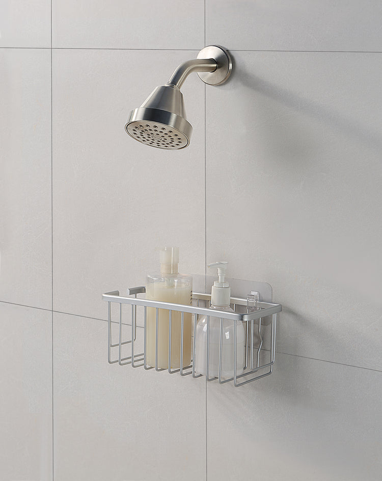 NeverRust Aluminum Shower Caddy Basket Organizer Storage Rack, Removable Adhesive Pad; No Drilling for Bathroom, Kitchen (Set of 1, Grey)